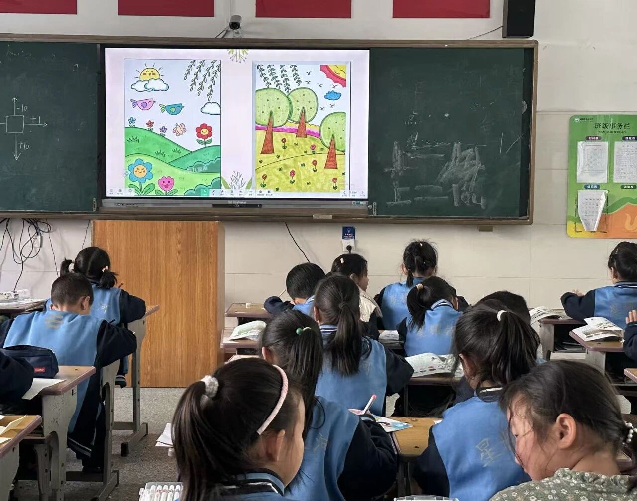 实习第三周,我逐渐熟悉各年级课堂节奏,从容投入教学工作。本周我主讲了五年级《夸张的脸》与一年级《自然的馈赠》两门课程。五年级学生思维活跃,我以卡通夸张图片为引,讲解五官变形技巧,耐心鼓励不敢下笔的孩子大胆创作。一幅幅神态鲜活、创意十足的作品,让课堂充满乐趣。面对活泼好动的一年级学生,我用树叶、花朵等实物引导观察感知,以趣味互动吸引注意力,孩子们用稚嫩笔触描绘自然之美,纯真又动人。课余我认真批改作业,钻研教学方法,深刻体会到因材施教的重要性。虽有忙碌疲惫,但看到孩子们的成长与笑脸,心中满是温暖与成就感。