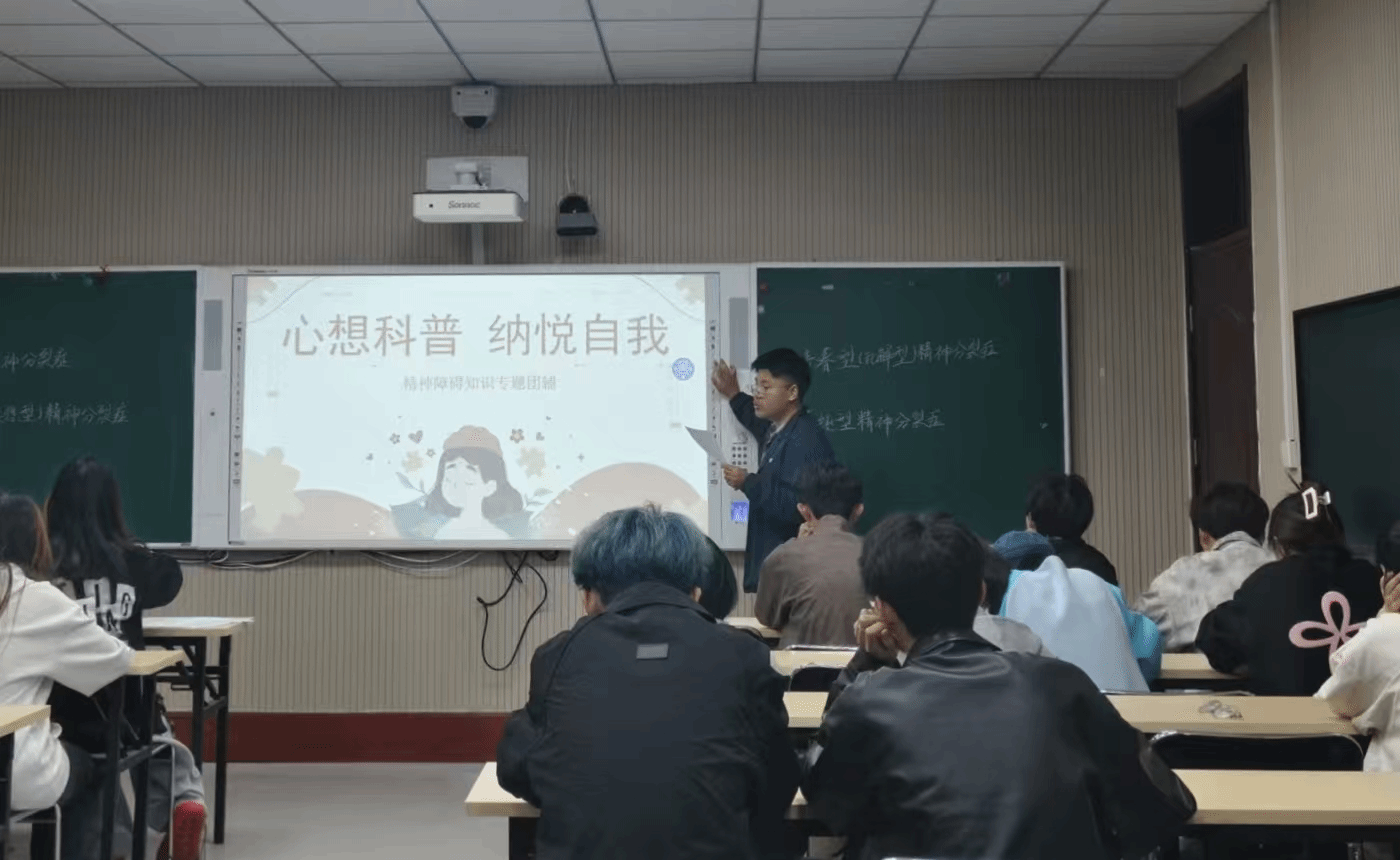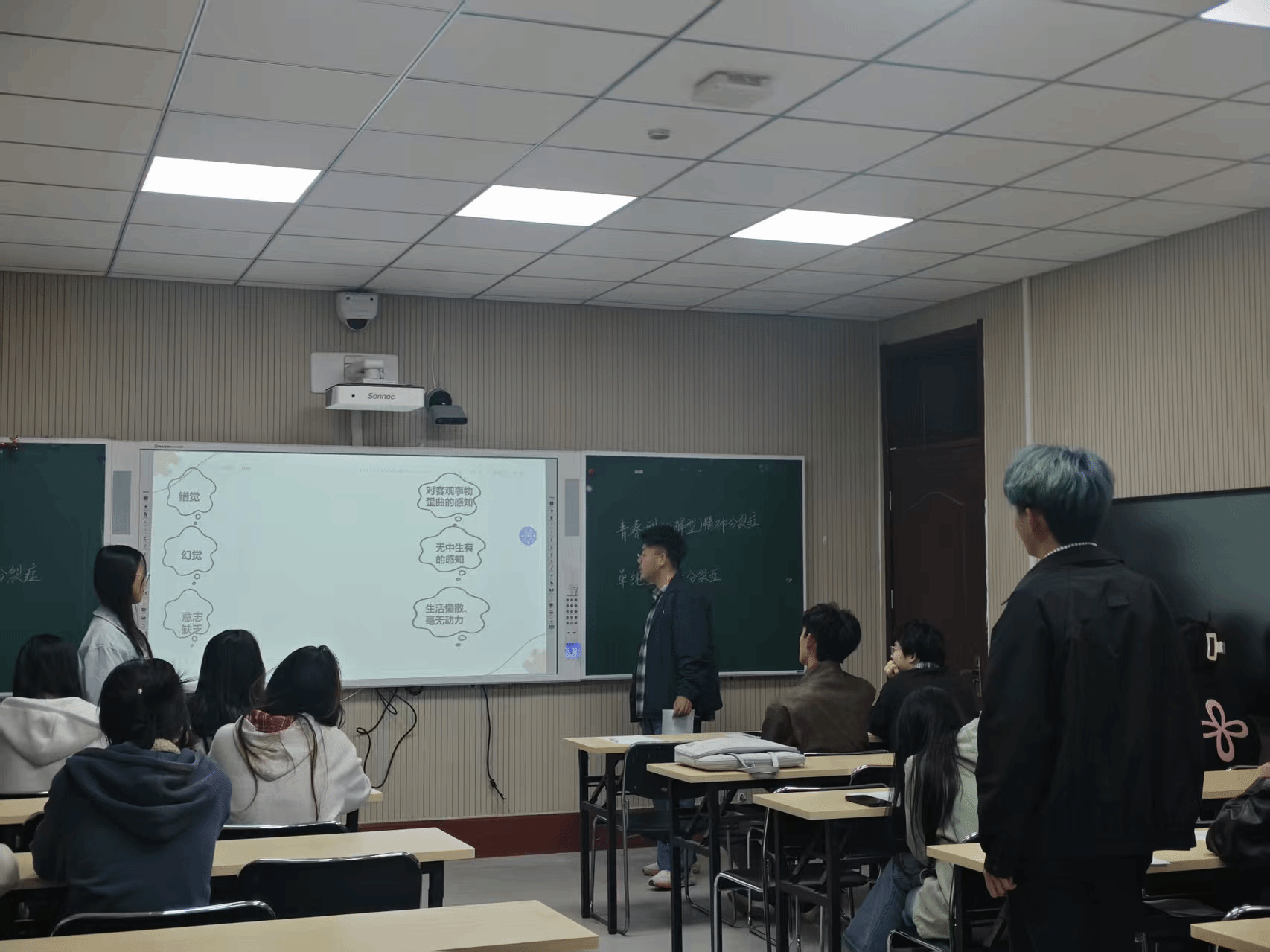 为提升心理骨干专业能力,筑牢校园心理防线,4月7日,yl6809永利检测中心在教学楼225教室开展“心享科普·悦纳自我”系列心理团辅活动。活动聚焦精神障碍与精神分裂症识别技巧培训,由心理发展部崔更扬主持,2025级心理委员、宿舍心理调查员全员参与。