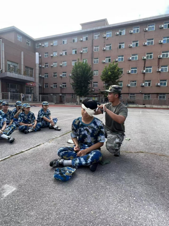 教官们以严谨的态度和专业的知识,向新生们详细讲解了外伤包扎的具体步骤,并亲自使用三角巾、绷带等包扎用具,现场示范了固定方法。每一个动作都精准到位,让同学们深刻体会到了急救技能的重要性。