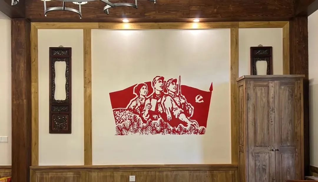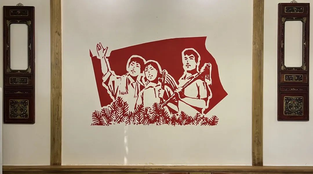 墙绘内容高度贴合了知青小镇的文化特色,既体现了红色农垦文化的厚重底蕴,又展现了知青们的青春岁月。墙绘内容采用具有视觉冲击力的剪纸墙绘方式,既贴合了时代感,又具有浓厚的艺术性。