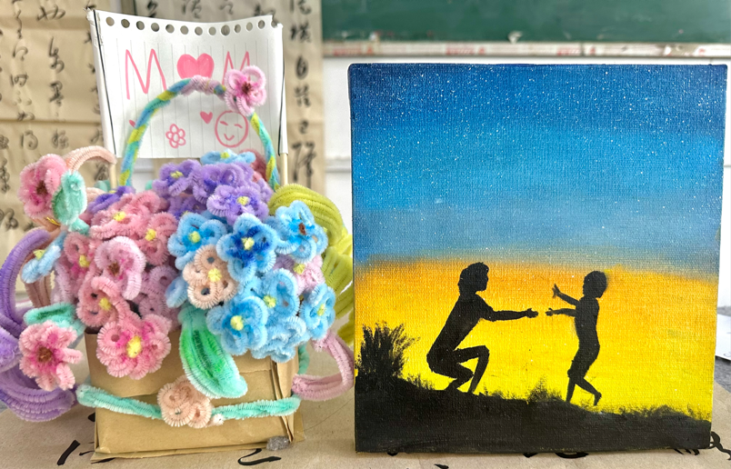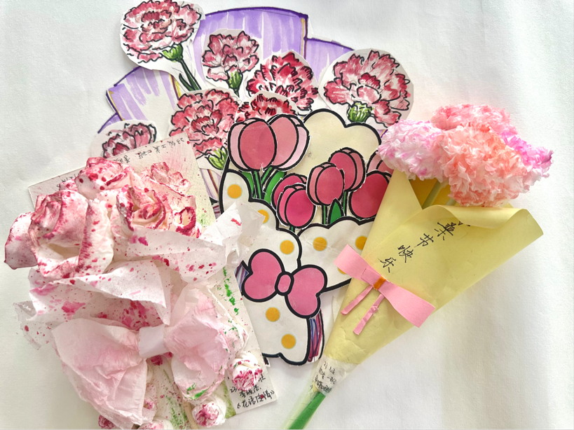 在此次活动中,每位同学都用心制作,每一幅画,每一束花束,每一个贺卡,每一个手工作品,都洋溢着对母亲的感恩与祝福。