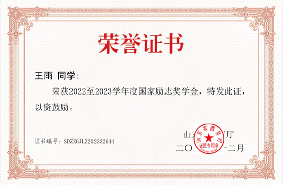 在校期间曾获国家励志奖学金、山东省师范类优秀毕业生。现已考入山东建筑大学马克思主义理论专业。她说,道路是曲折的,前途是光明的。