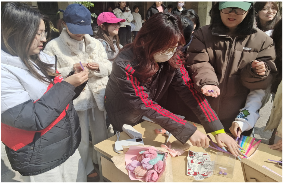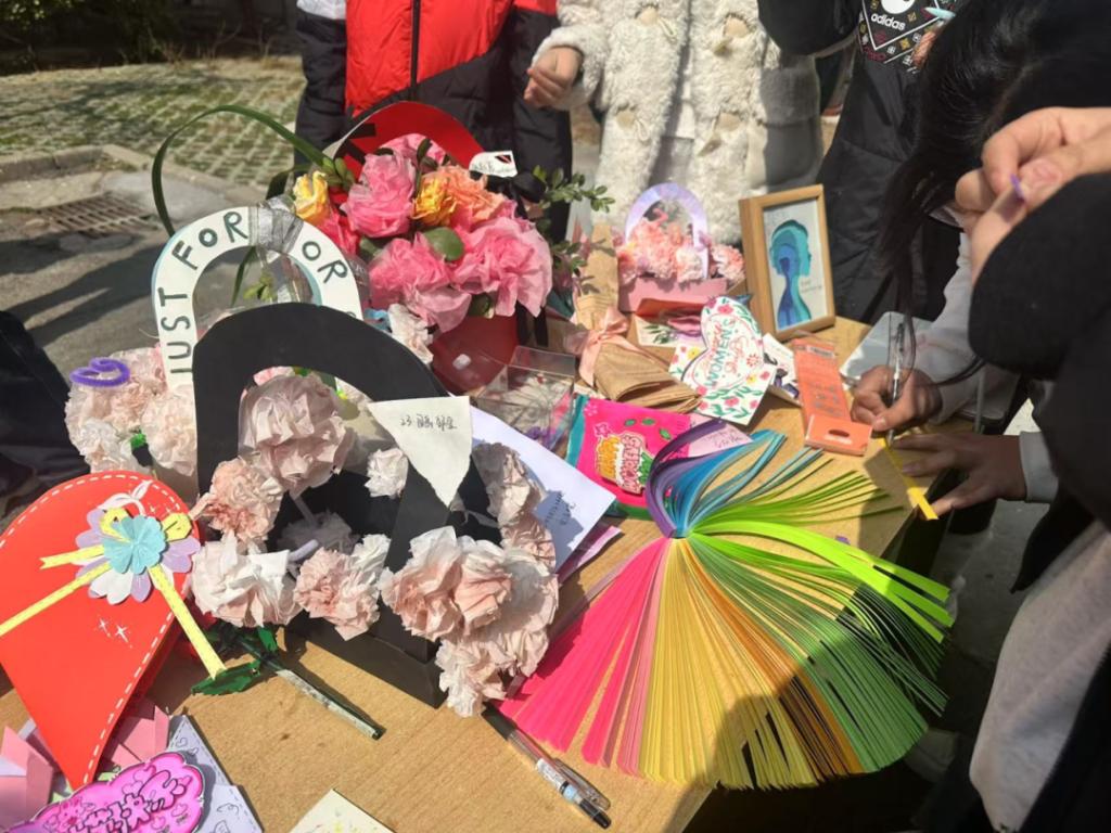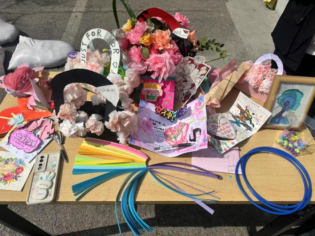 活动分为线上作品征集与线下互动两大板块。线上环节以“女性力量”为主题,共征集到贺卡、手工花束等原创手工艺品。同学们通过精巧的创作,将女性坚韧与温柔的特质融入作品,传递了同学们对节日的祝福。
