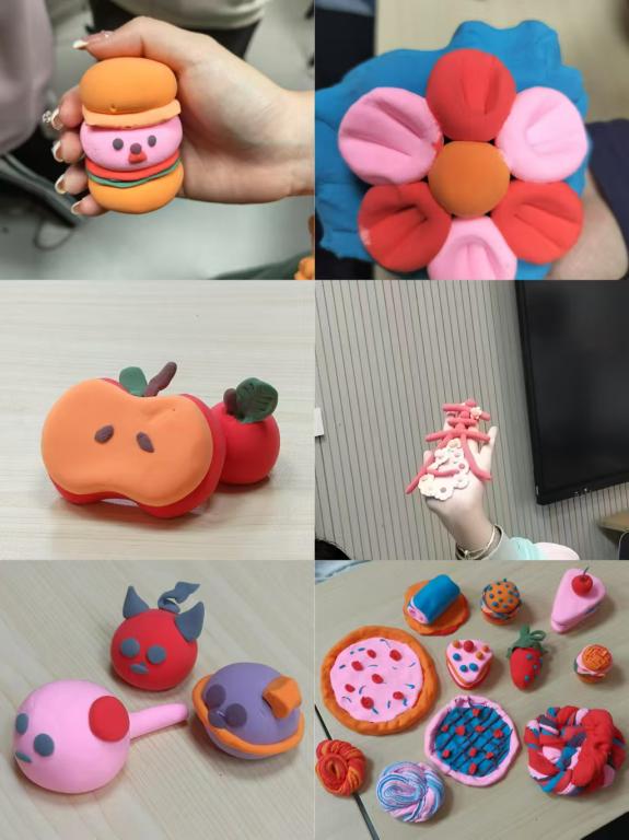 此次黏土创作活动不仅是一次心灵的洗礼,更是一次自我探索与表达的旅程。通过黏土这一特殊的媒介,同学们得以将自己的内心世界以直观而生动的方式呈现出来。同学们不仅感受到了手工制作的乐趣,还让生活中紧绷的神经得到了放松。小小的粘土,不仅是生活的点缀,更是情绪的“收纳器”,在手工制作的过程中团队成员收获了动手创造的成就感与团队互助的能量,既是一次“以美润心”的生动实践,也为同学们留下温暖而独特的回忆。