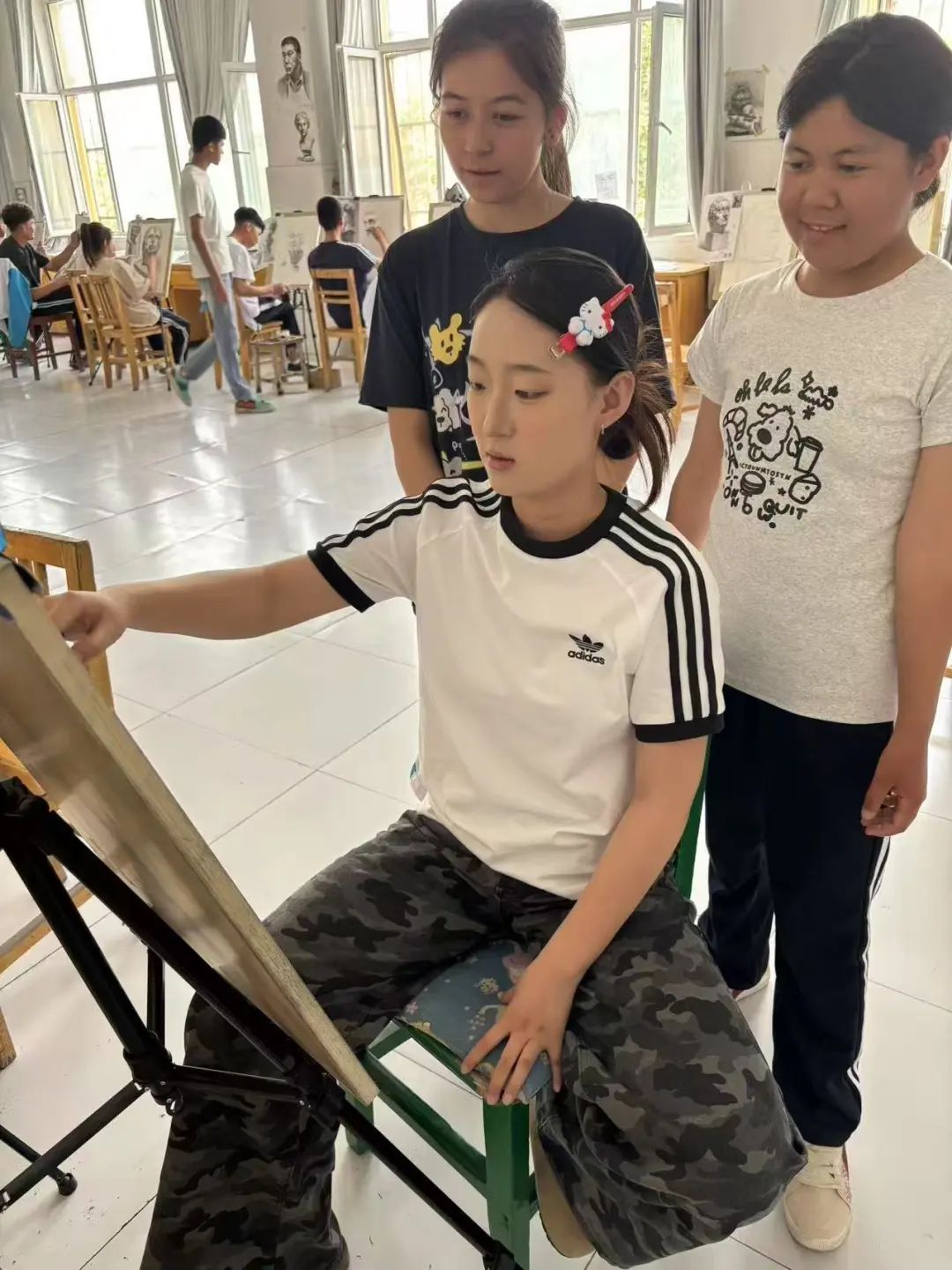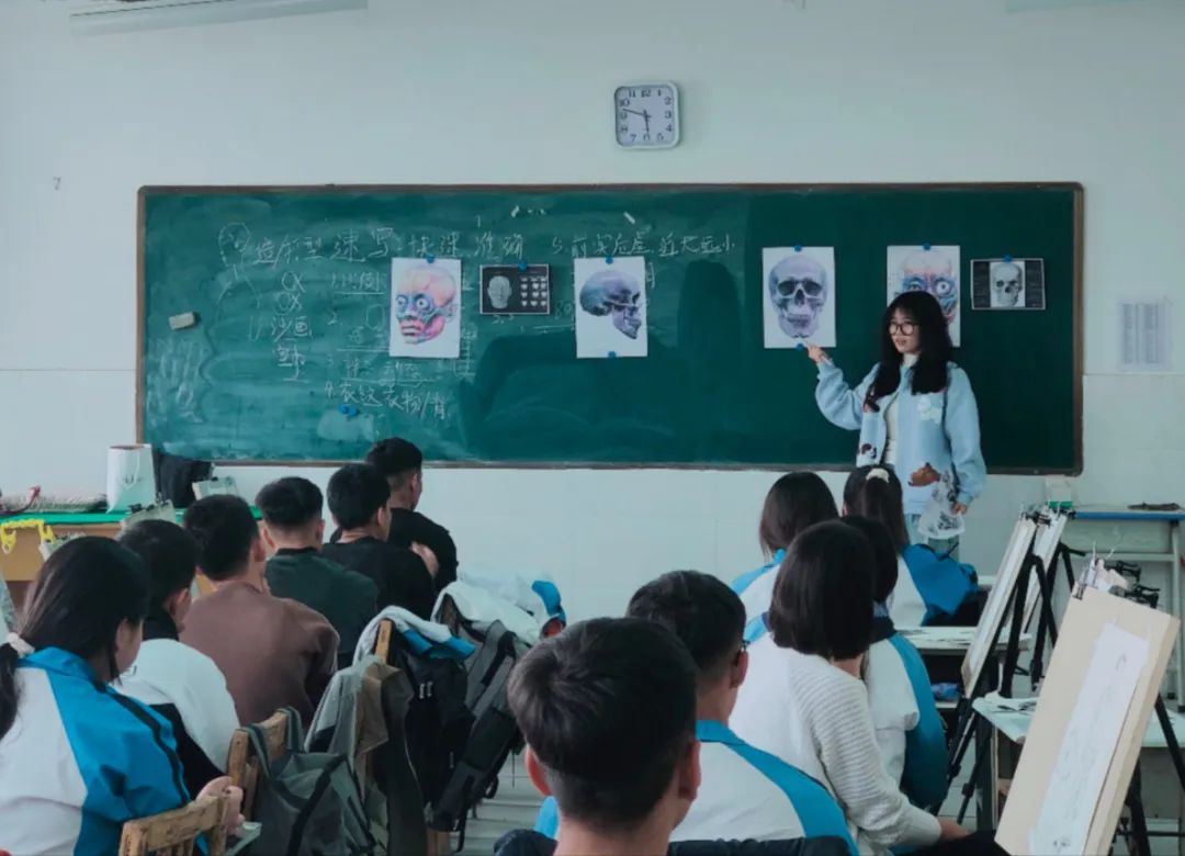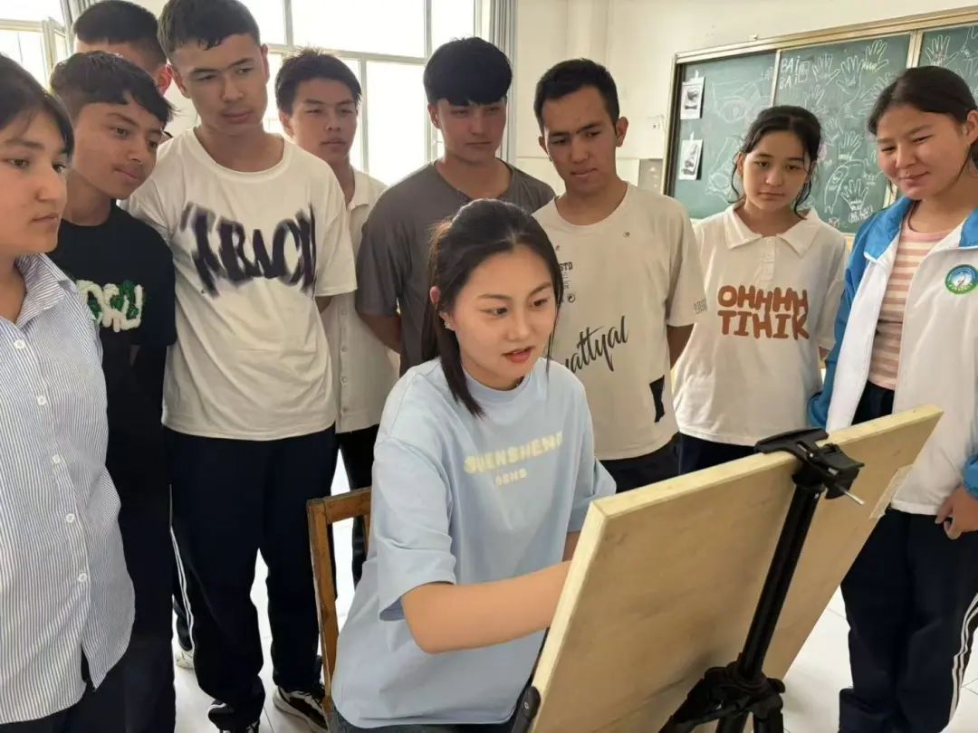 在美育传承与创新的征程中,实习教师们化身文化使者,以素描为纽带,以书法为桥梁,用专业与耐心,陪伴当地学生从不敢画到大胆创,从执笔生疏到勾勒出精彩作品。