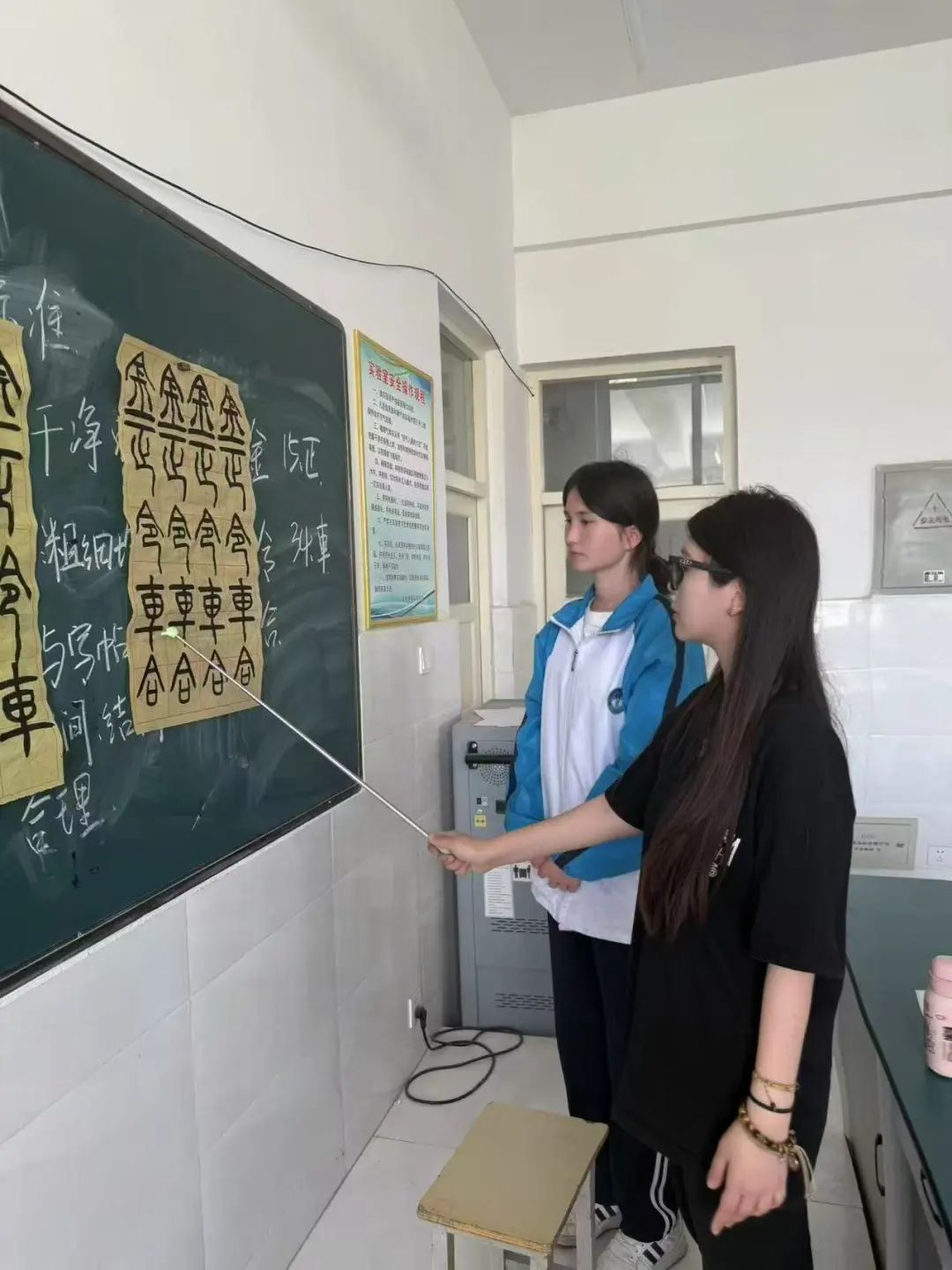 面对学生美术与书法基础差异大的问题,yl6809永利检测中心实习教师创新教学模式,推行"分层递进"教学模式,将复杂问题简单化。他们多次围坐在一起讨论,从主题到作品的选择;从布局到引导学生参与,每一个细节都经过反复推敲。