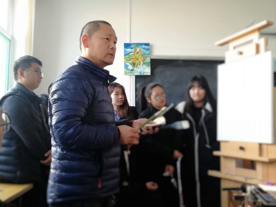 明亮老师时常教导同学们要“真水无味”,指艺术本身要有意味的形式,绘画也要“君子不器”,抛开杂念通过真实的笔触和拙朴的色彩来表达。并且“天下之大事,必作于细,天下之难事,必作于易。”不高求速达,不贪妄功利,一步一个脚印、踏踏实实的作画。刘老师也通过自身的绘画经历阐释:多画、常画。对一种物品的熟练来贯通万物,逐渐形成自己的绘画风格。