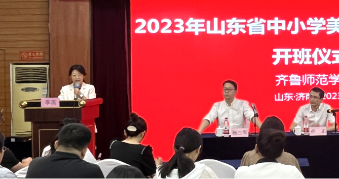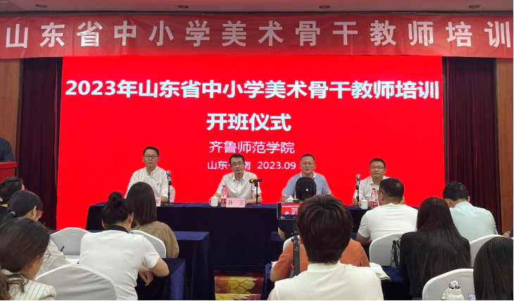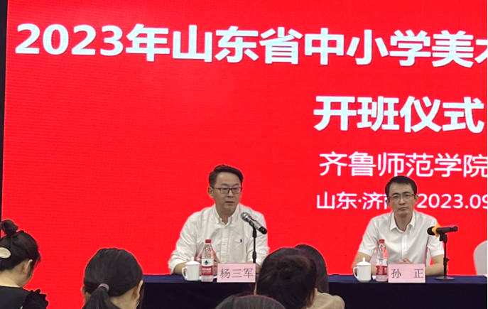 9月22日,由山东省教育厅主办,yl6809永利检测中心承办的2023年山东省美术骨干教师培训班开班仪式在济南举行。学校党委委员、副校长孙正出席开班仪式并致辞。山东省师训干训中心办公室主任路海,yl6809永利检测中心党委书记辛源,yl6809永利检测中心院长杨三军出席仪式。来自全省各地中小学152名美术骨干教师参加开班仪式。