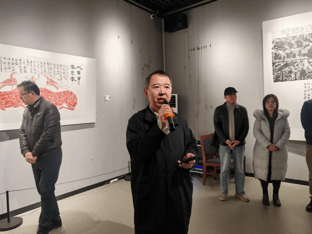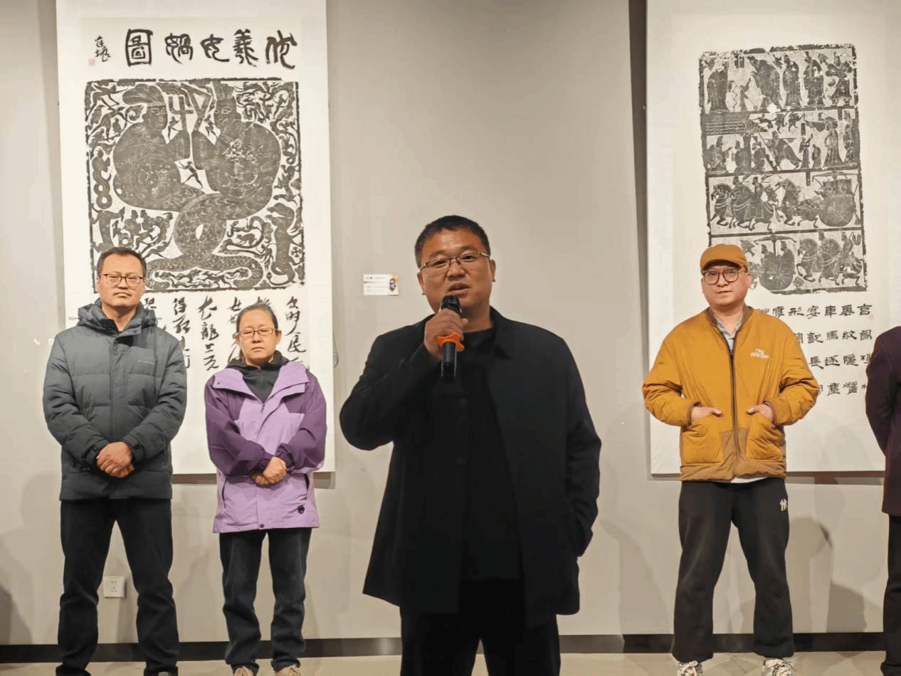 淄博海岱金石馆馆长杨旭发言中,首先感谢老师们的题跋题绘让拓片熠熠生辉。他引用吴昌硕“艺术创作源于金石碑刻”、王铎“学书不参透古碑,书法终不古,为俗笔多也”的观点,以及赵汝珍《古玩指南》中“世人当以碑刻为基本素养”的论述,强调金石碑刻的重要性。并引用钱穆先生所言“山东金石碑刻的辉煌呈现,自汉唐以来从未有之”,阐述金石拓片的深厚历史文化底蕴和本次展览的特殊和重要之处。