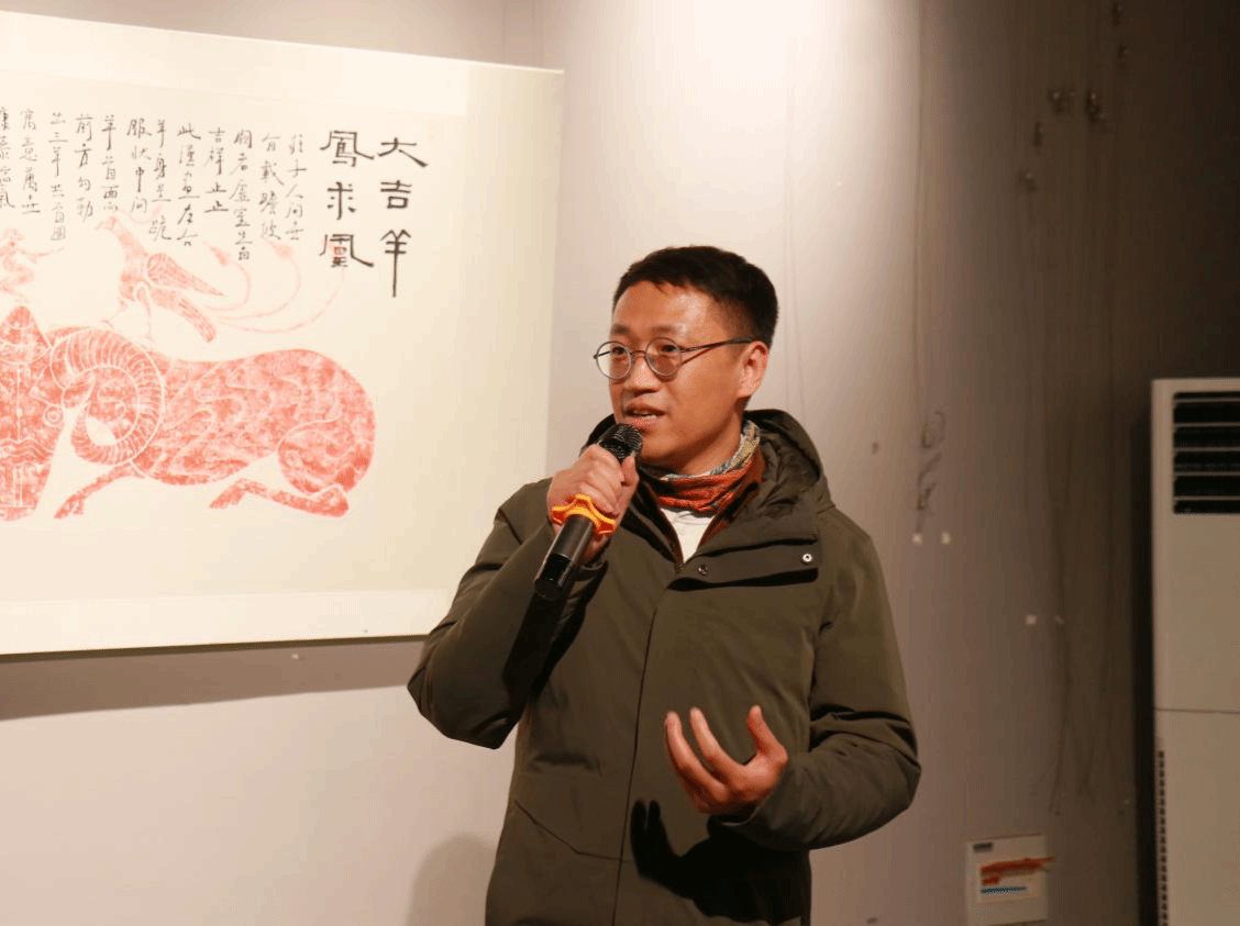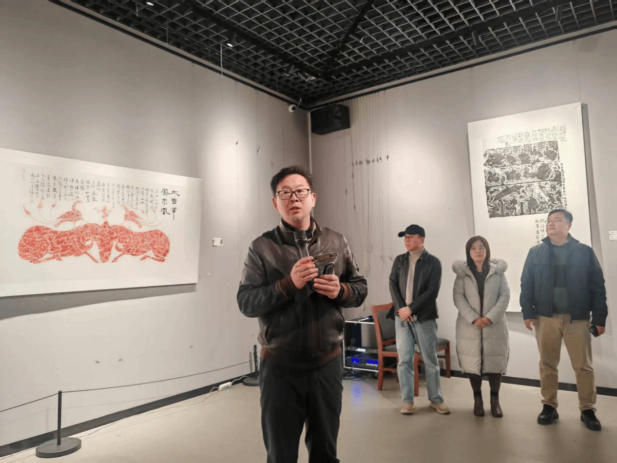 书法教研室主任朱茂刚作为本次展览的策展人,介绍了此次金石拓片题绘展的缘起和准备工作,讲到历代文人雅士深耕金石学研究,从敦煌藏经洞到清民金石学兴起的文明脉络。本次活动中,老师们以金石学相关内容为基础,开展二次创作,通过笔墨诠释对金石学的认知与理解,今日展出作品为大家提供了切磋交流的平台。
