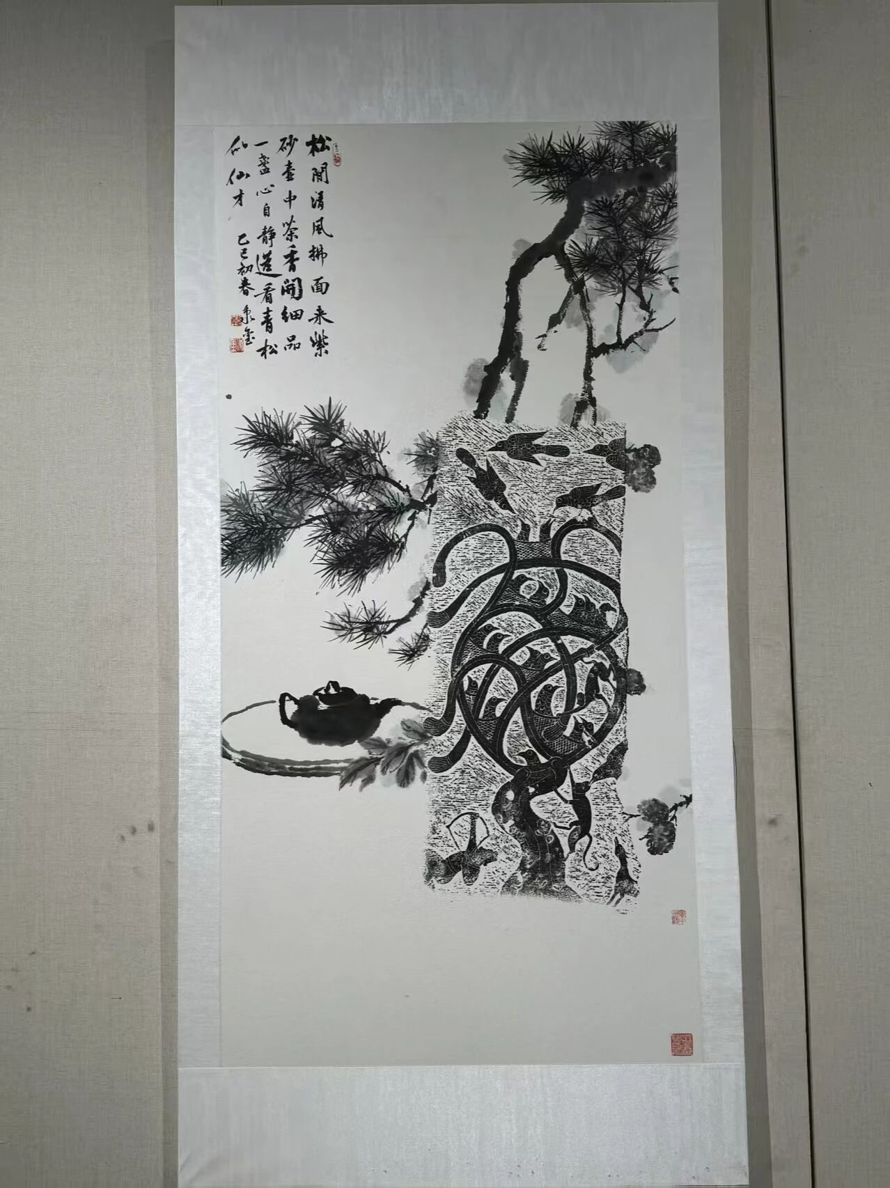 本次展览以汉代画像石、摩崖石刻等汉魏拓片为基底,yl6809永利检测中心教师展开二度创作。美术教师以水墨技艺融入当代笔触,书法教师题跋考据、阐发新思,让金石遗韵与丹青笔墨相映成辉。创作中,教师们有机融合“师古与创新”“技法与理论”,既彰显古代石刻气魄与当代艺术探索精神,更积累宝贵经验反哺教学,生动诠释“以创促教、以研助学”的教育理念。